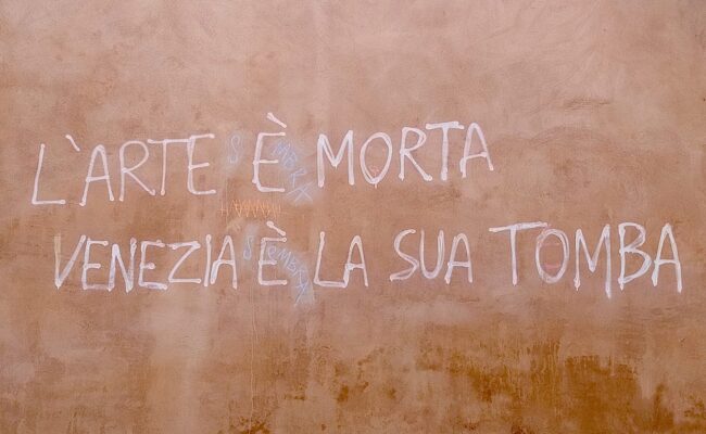 L’arte è morta Venezia è la sua tomba mi accoglie da questo muro ogni volta che vado in Accademia di Belle Arti.