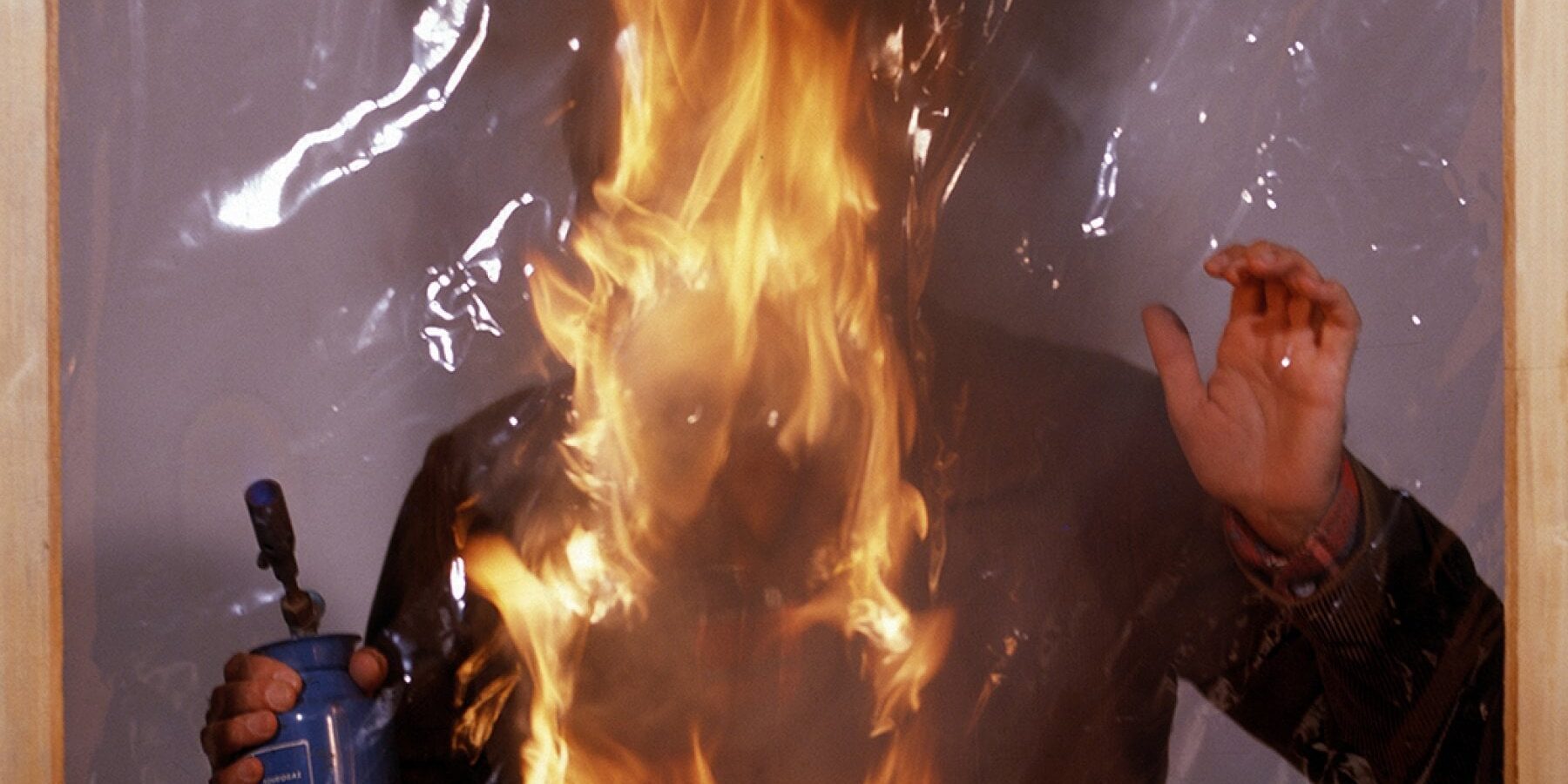 È il 1953 quando Alberto Burri inizia a rimodellare questo materiale nuovo, la plastica, servendosi di un elemento antichissimo, il fuoco. Inizia a bruciare prima il legno e poi la plastica, simbolo di una nuova civiltà fondata sul consumo, un materiale che si trovava dappertutto e in varie consistenze, dalle più morbide alle più resistenti, assumendo nomi diversi. Nylon, formica, cellophane, Moplen. Quest’ultima, il Moplen, ce la raccontava Gino Bramieri in un carosello storico: Signora, guardi bene che sia fatta di Moplen.